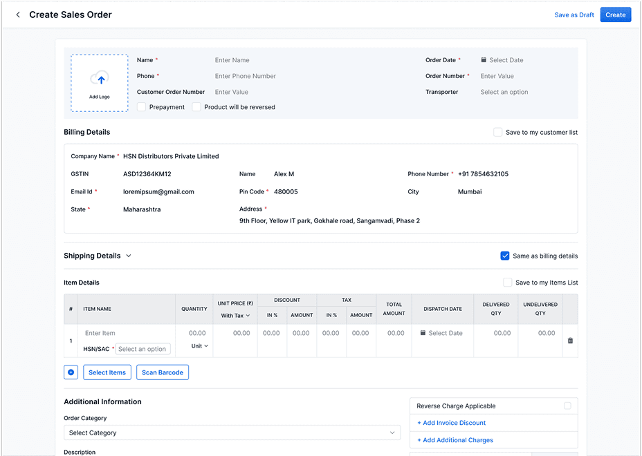 Creating Sales Invoice/ Sales Order