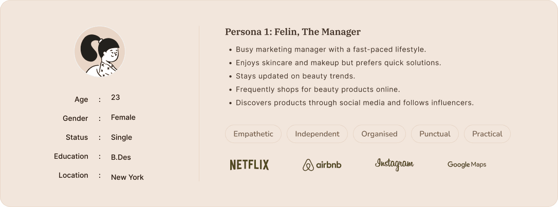Picked a color palette that highlights luxury and sophistication, aligning with the premium feel of beauty and cosmetic products. These rich and elegant colors create a sense of luxury, enhancing the brand's upscale identity.